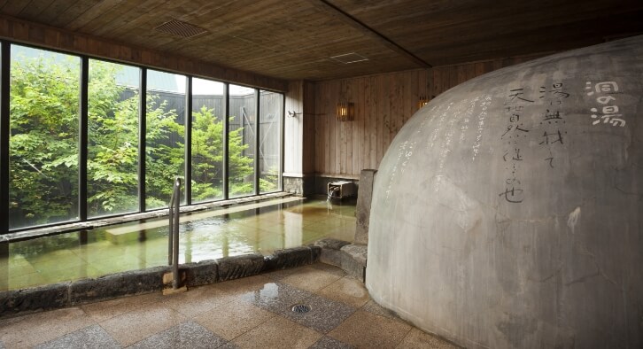 内風呂は小樽軟石を使用した、まるで『蔵』の中にいるような雰囲気。